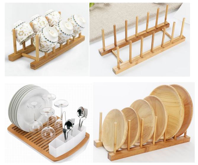 1. Natural bamboo finish. Easy to keep looking as good as new by washing occasionally with mild soap.Natural bamboo dish rack and carbonized bamboo rack which is Eco-friendly high quality bamboo, easy to clean and maintain.